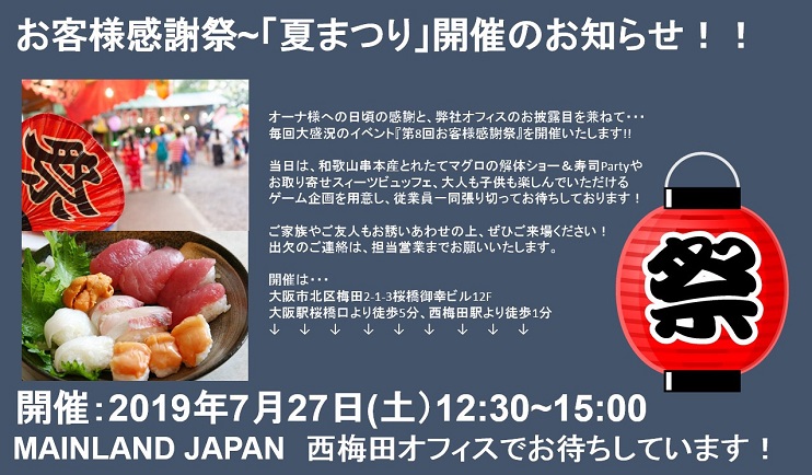 日頃の感謝を込めまして、感謝祭『夏祭り』を開催いたします。